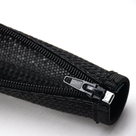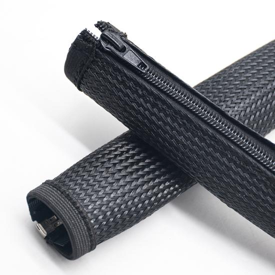 Cremallera envoltura de cable extensible Hecho de monofilamento de poliéster de alta resistencia y cosido en una cremallera de nailon. Este tipo z La funda ipper ahora tiene la versatilidad de un envoltorio de cable y la protección de 360° de una funda trenzada.